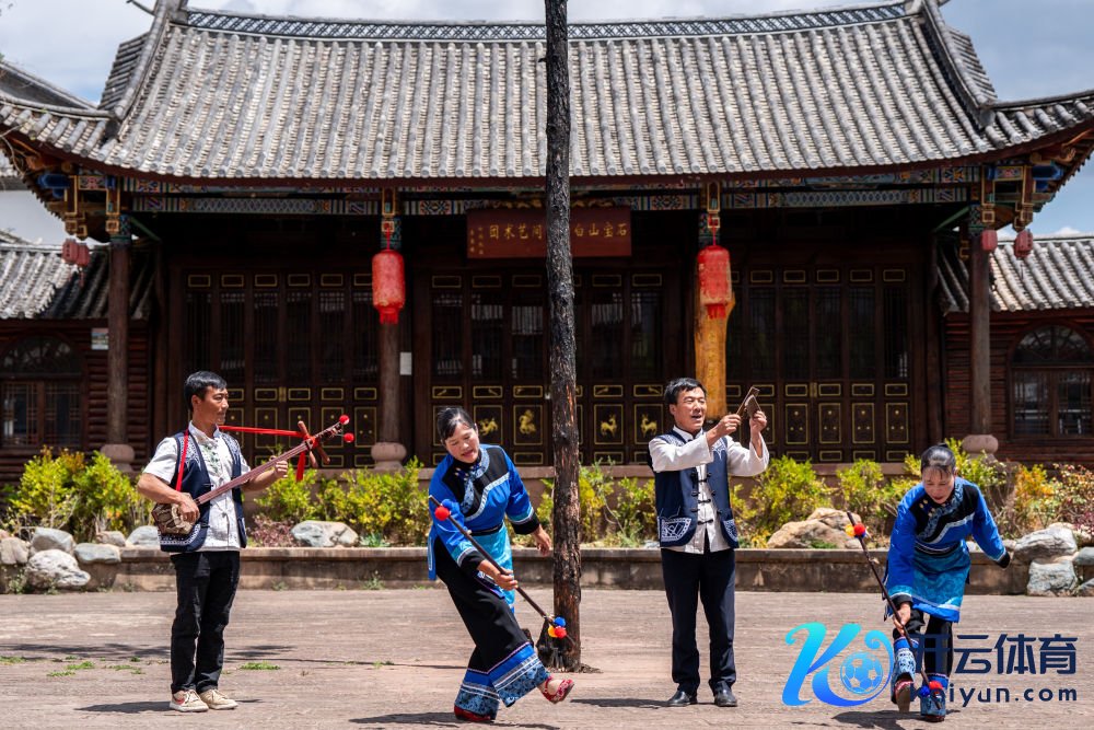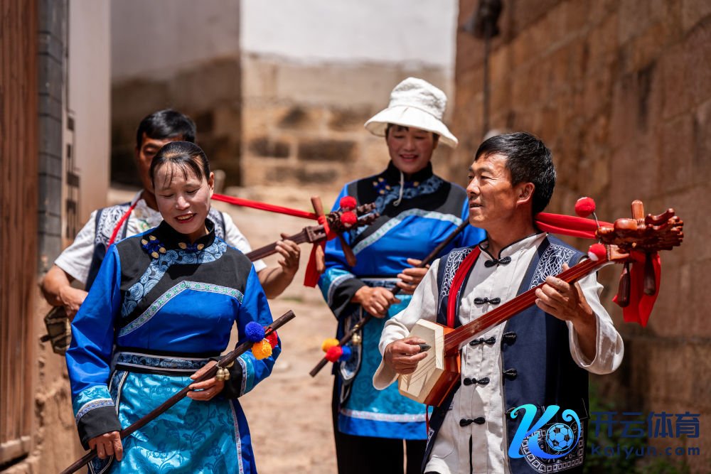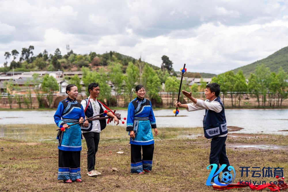 在云南省大理州沙溪镇石龙村,石宝村歌会国度级非遗传承东说念主姜伍发(右二)和门徒在排演节目(4月19日摄)。新华社记者胡超 摄