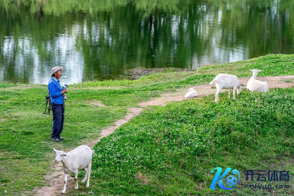 云南省大理州沙溪镇北龙村村民在黑潓江边放羊(4月18日摄)。新华社记者胡超 摄