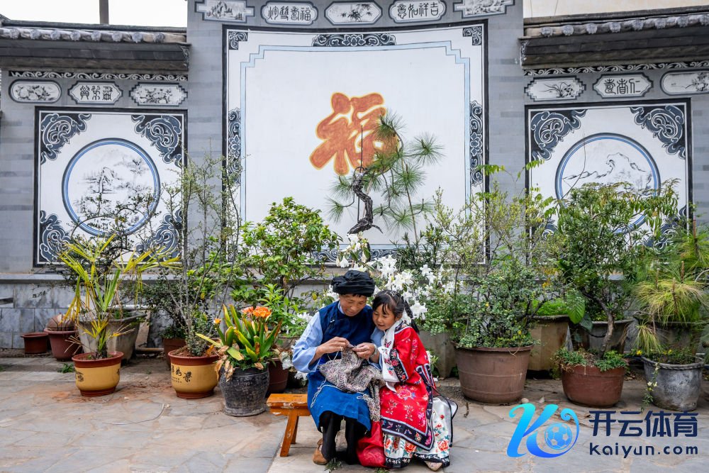 云南省大理州沙溪镇寺登村白族老东说念主杨金池在自家院子里织毛衣(4月20日摄)。新华社记者胡超 摄