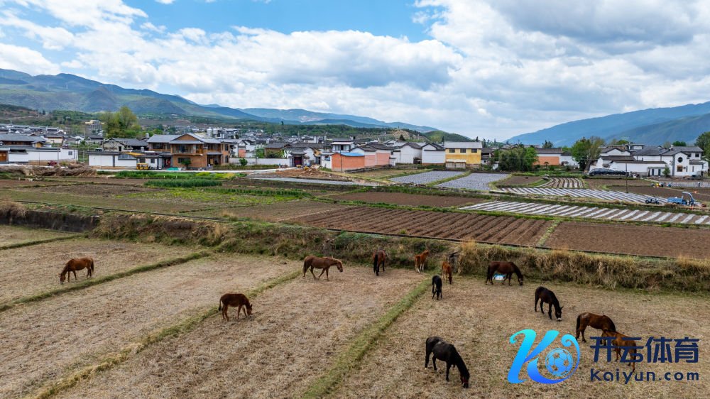 云南省大理州沙溪镇寺登村村民衍生的马匹在田间觅食(无东说念主机像片,4月20日摄)。新华社记者刘莲芬 摄