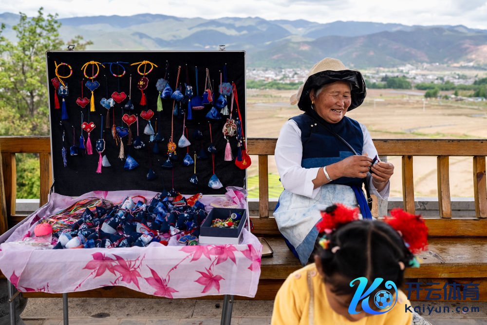 云南省大理州沙溪镇华龙村的白族老东说念主何先会在整理制作好的手工刺绣香囊(4月20日摄)。新华社记者 刘莲芬 摄
