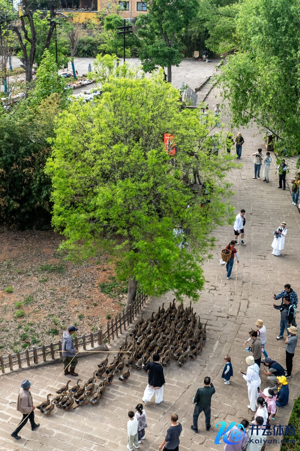 云南省大理州沙溪镇寺登村村民将鸭子赶回家(无东说念主机像片,4月19日摄)。新华社记者胡超 摄