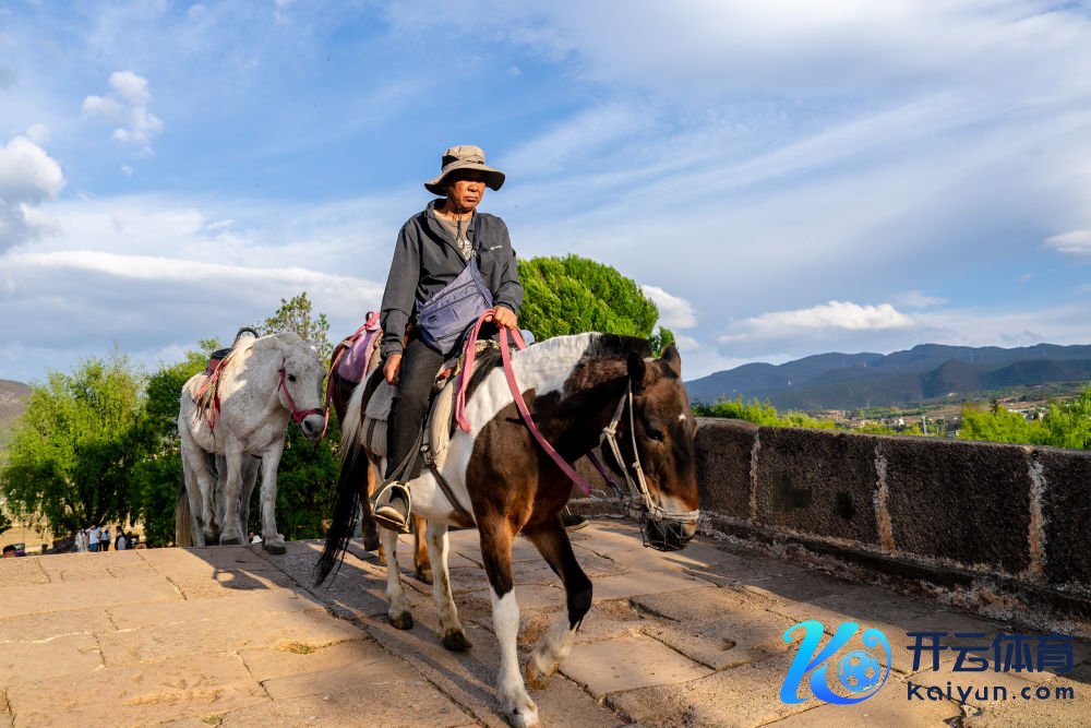 村民骑马经由云南省大理州沙溪镇寺登村玉津桥(4月18日摄)。新华社记者刘莲芬 摄