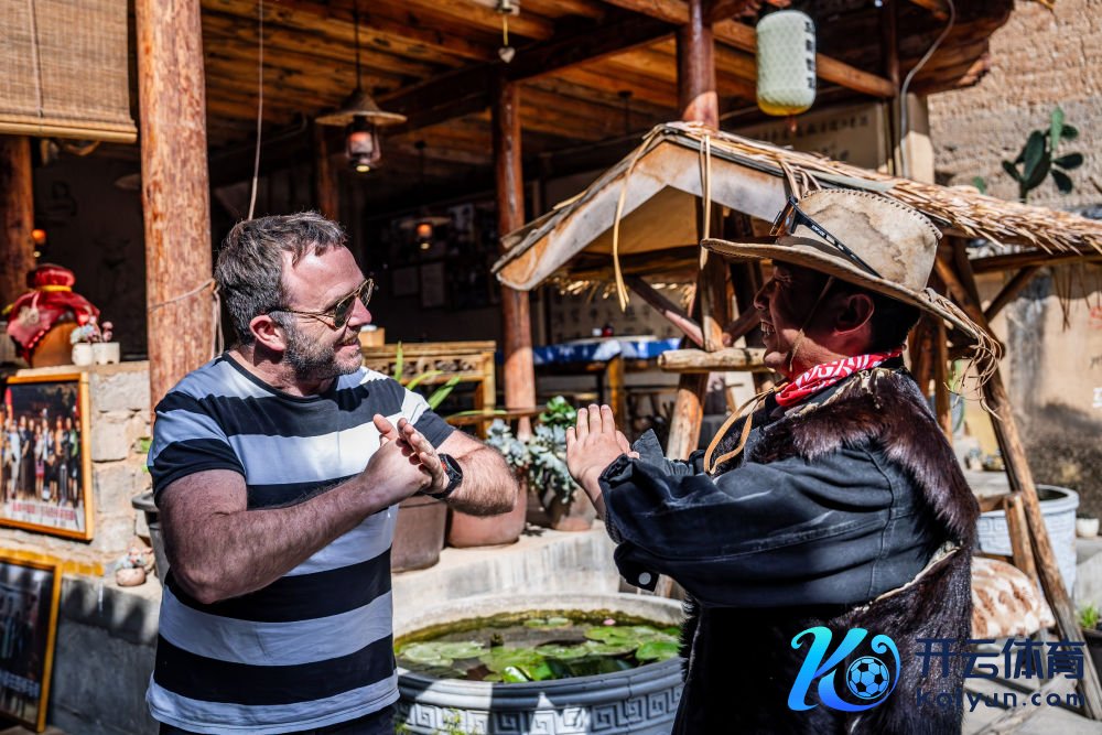 在云南省大理州沙溪镇寺登村,马帮后东说念主杨四云和别称番邦搭客告别(4月19日摄)。新华社记者胡超 摄