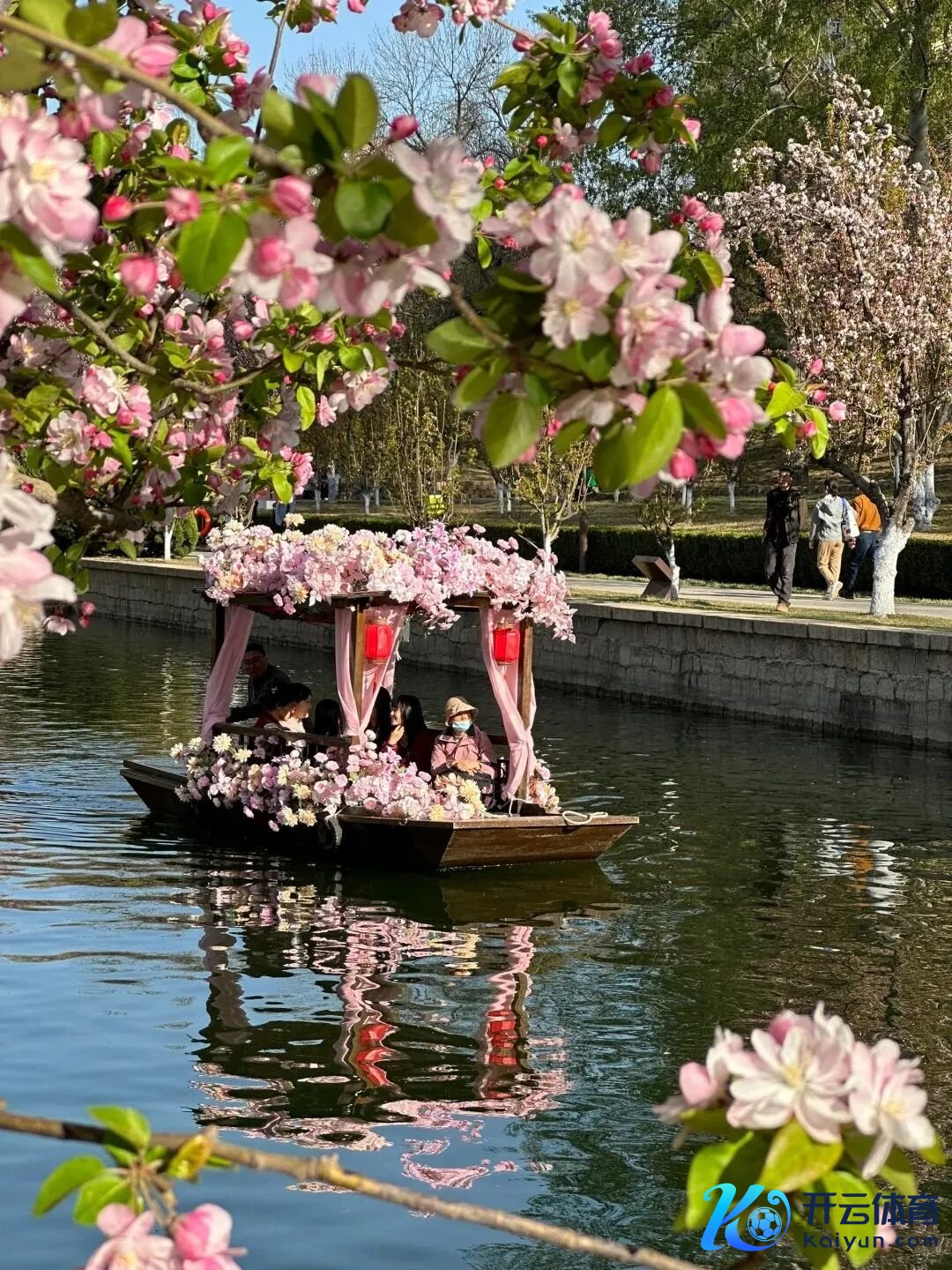 昨世界午2时,7艘摇橹船在河谈船埠处静立。一些责任主谈主员忙着为摇橹船披“花衣”,还有的忙着为船埠安装安全绳子,让游东谈主上船更安全、有序。摇橹船船头被大片或粉或白的仿真海棠花包裹,船上红色灯笼、粉色门帘极具登第韵味,与蓝天、白云、绿水、似锦井水不犯河水,游东谈主仿佛一脚跻身江南水乡。“这些摇橹船是连夜从温榆河公园运来的,由于这里原是元广大的护城河,是以游船装束中加入了元代元素。”北京市城市河湖经管处土城经管所责任主谈主员李新舟先容。