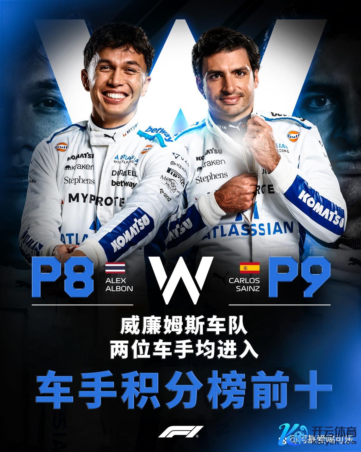 本赛季最大的黑马,非威廉姆斯车队莫属。他们凭借一辆从一运行就竞争力全齐的赛车,透顶开脱了垫底集团的泥潭。阿尔本在赛季大部分技术里展现了惊东说念主的庄重性,为车队奠定了坚实基础。而塞恩斯在阅历初期磨合阵痛后,于赛季末段透顶爆发,两度勇夺领奖台,发达号称惊艳。车队年终第五、“地球组冠军”的头衔,是对他们全年起劲的最好褒奖。这不仅是积分的飞跃,更是信心的重塑。