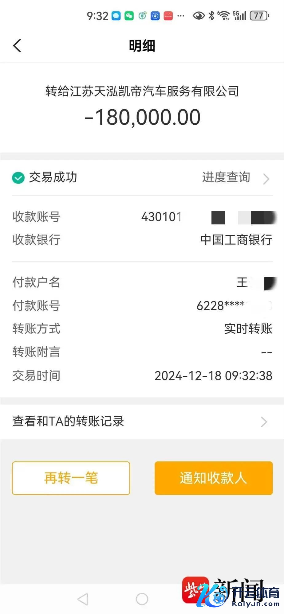 11月29日,陈某某陈述薛先生车已到店,让其抽空验车。12月1日,薛先生和一又友一同赶赴南京大明路的天泓凯帝4S店,“我一又友是提车,我是验车并交纳尾款。”薛先生先容,尾款20万元是通过刷公司的POS机投入公司账户的。由于同样需要笼罩,当天薛先生未提车,而一又友将车提走了。