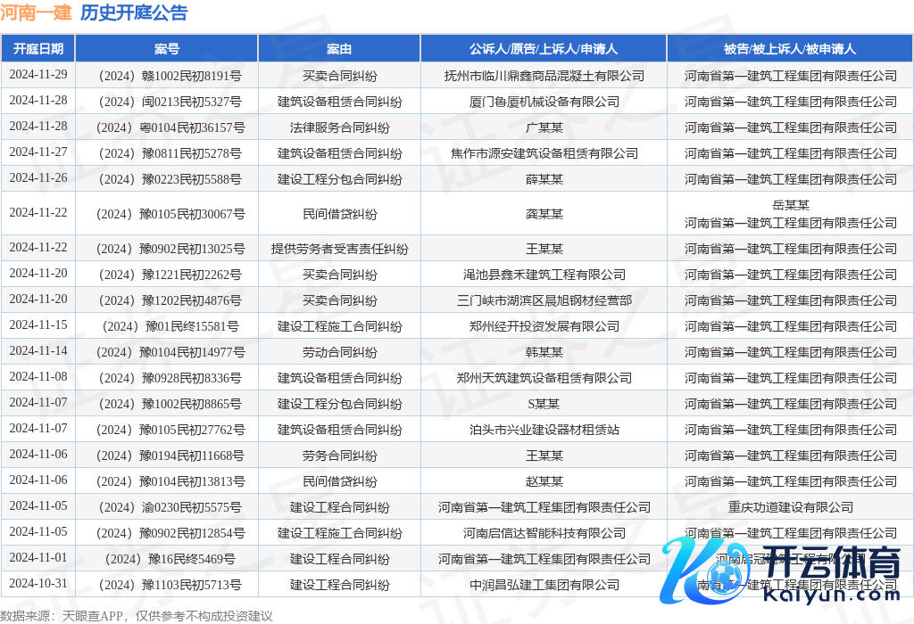 本站音信,凭证天眼查APP泄露,近日公布了一则河南省第一建筑工程集团有限职守公司算作被告/被上诉东说念主的开庭公告,详备本色如下: