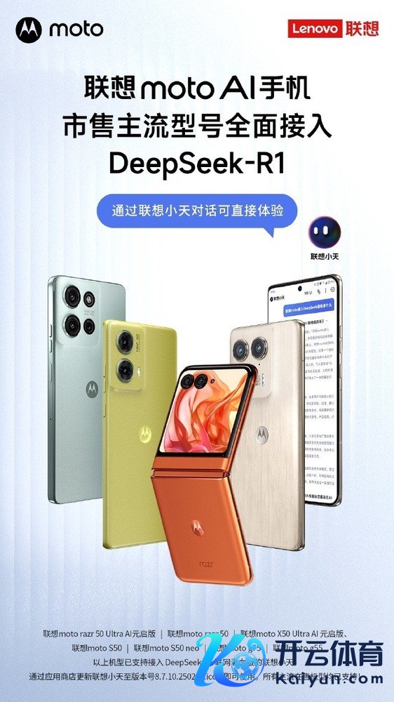 2月19日,联念念moto官微发文称,联念念moto主售机型依然一起搭救DeepSeek,成为接入DeepSeek机型最多的手机品牌!官方示意,moto旗下更多机型依然接入DeepSeek-R1满血版大模子。包括联念念moto razr 50系列、X50 Ultra Al元启版、S50、S50 neo、g75、g55。以上机型已搭救接入 DeepSeek-R1联网满血版的联念念小天,无需用户下载注册和复杂法式操作,惟一使用接入了DeepSeek的moto机型,就能搭救联网搜索,可使用语音发问,一键叫醒小天,即可体验。