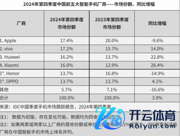 市集调研机构IDC发布的最新禀报骄横,2024年中国智高手机市集出货量瞻望达到2.86亿台,同比增长5.6%。抹杀苹果后,2024年第四季度中国市集前五大手机厂商辞别为vivo、华为、小米、荣耀和OPPO。