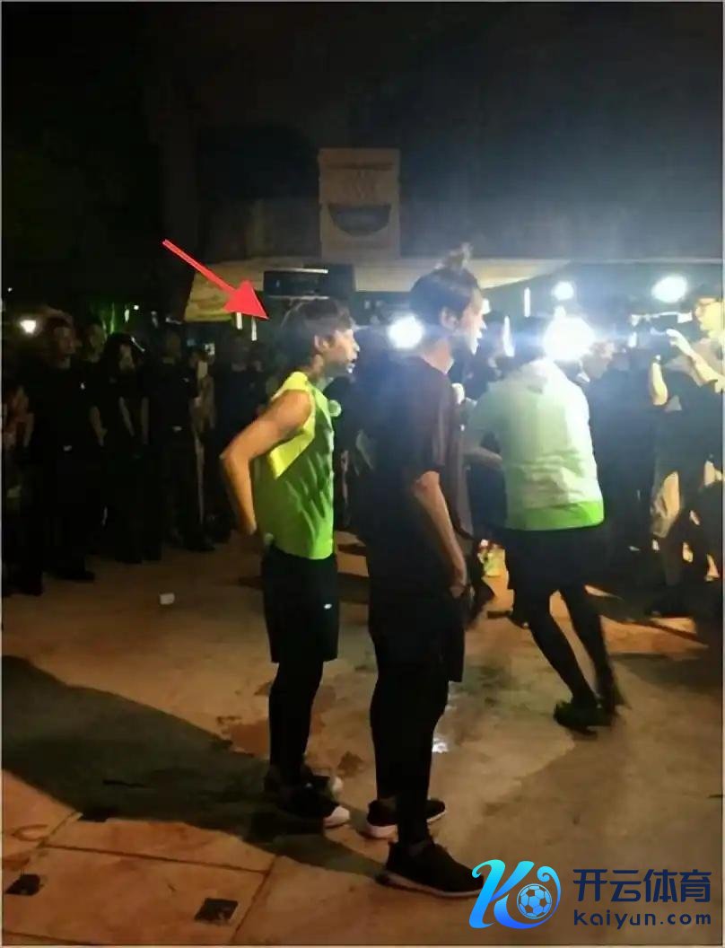 在东谈主群中,他和安保的身高差很彰着。