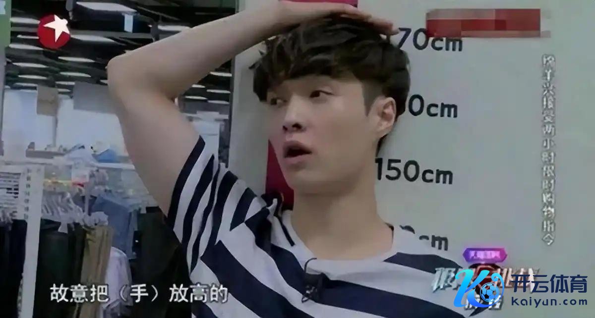 由于节目组测量身高时,他穿了鞋,再加上发型有些蓬松,他的手还抬得比拟高……