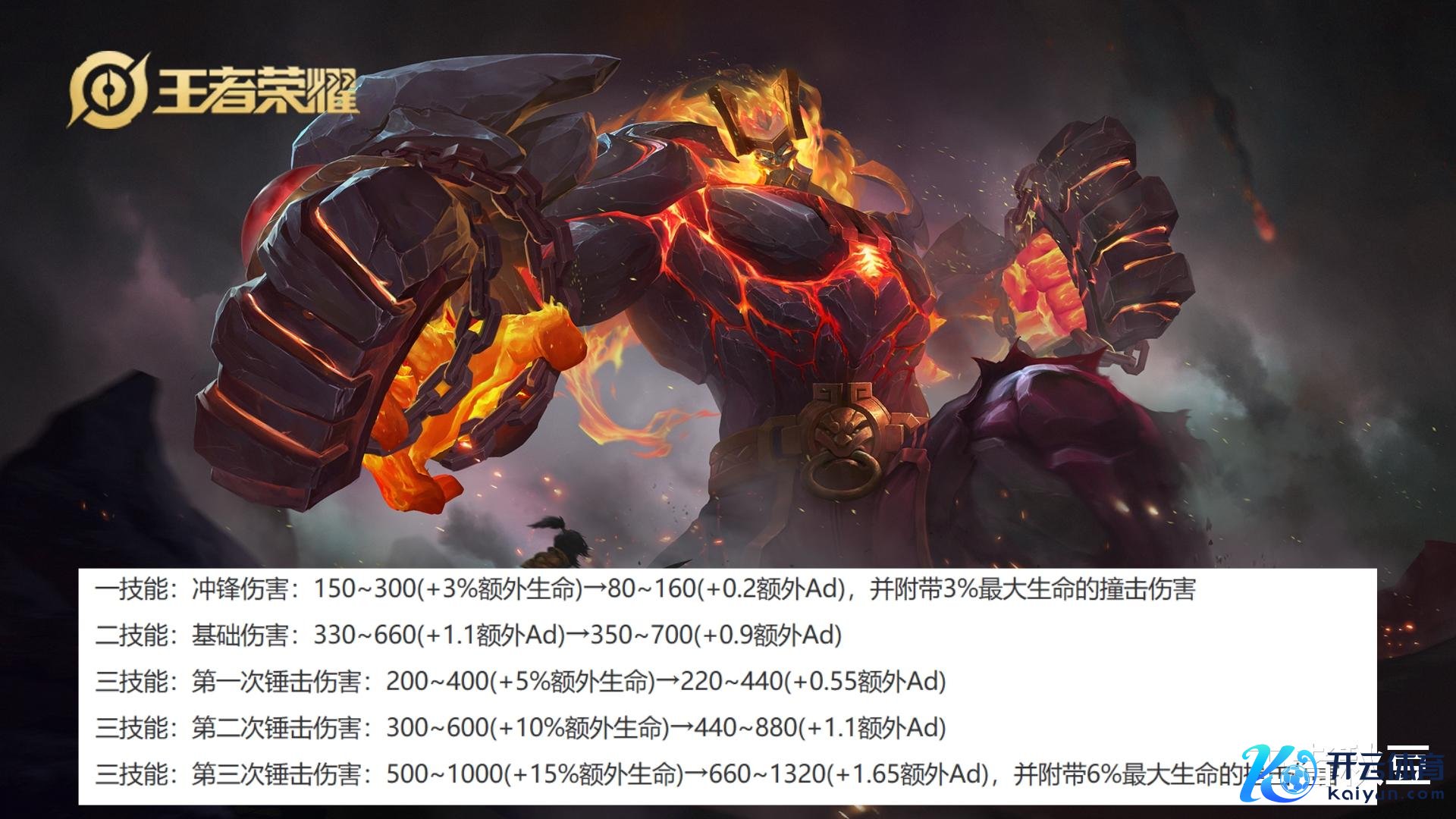 廉颇全本事数值转机。一本事冲锋基础伤害镌汰70~140点,可是新增了0.2特别AD加成并附带3%最大人命值的撞击伤害。二本事基础伤害增多20-400点,特别AD减少0.2。三本事三次撞击全部从特他人命加成转机为特别AD加成,第三次更是附带6%的最大人命撞击伤害。