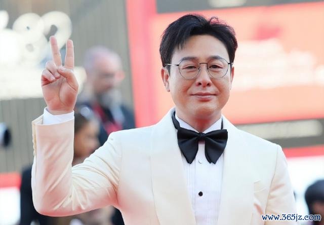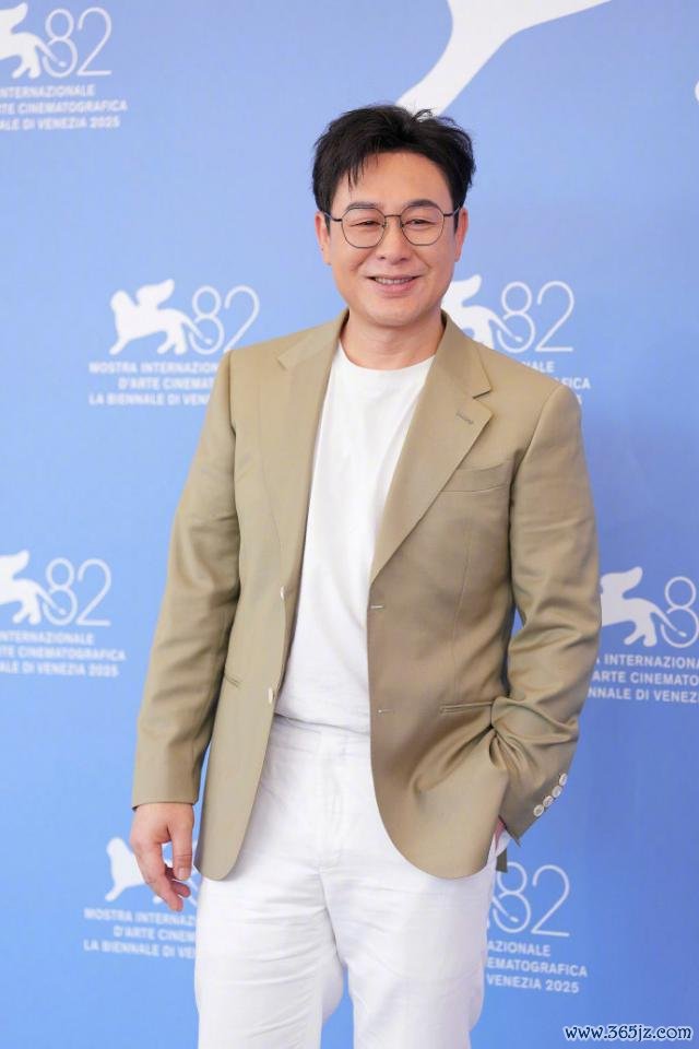 photocall 步骤,张颂文卡其色西装外衣搭配白色 T 恤和裤子,剖析稳定,还有几分"老钱"的滋味。