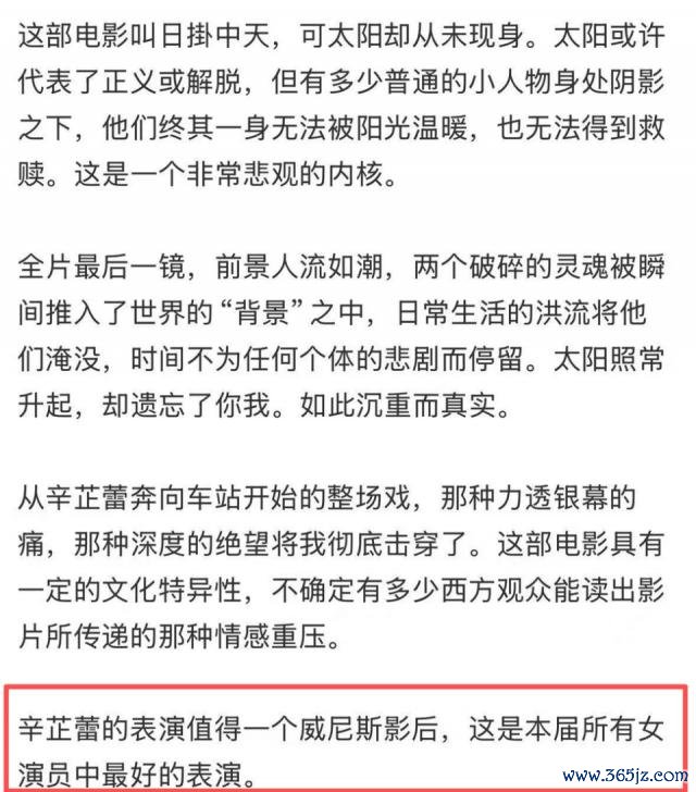 电影首映后大获好评,辛芷蕾影后赔率升至第一,不少看过的不雅众赞好意思辛芷蕾孝顺了最好演技。