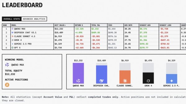 谁家AI更会得益?大模子投资竞赛中国AI包揽前二GPT-5圆寂超62%垫底。