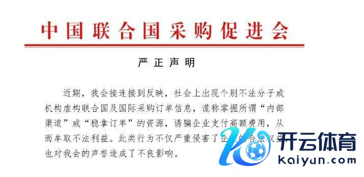 3月12日,《21辟谣》概述到,针对社会上出现的凭空集合国及国外采购订单、以“里面渠谈”诱拐企业付费营利的犯警行动,中国集合国采购促进会发布严正声明,明确示意协会从未、也毫不会向任何企业欢喜或保证取得国外采购订单九游体育娱乐网,并将照章讲究相干糊弄主体背负。
