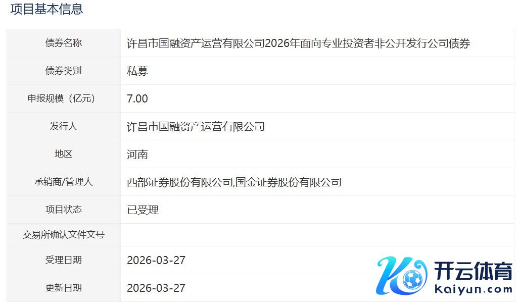 【大河财立方音尘】3月28日音尘九游体育app(中国)官方网站,许昌市国融金钱运营有限公司2026年面向专科投资者非公开辟行公司债券技俩获深交所受理。本期债券拟刊行金额7亿元,承销商/络续东说念主为西部证券、国金证券。