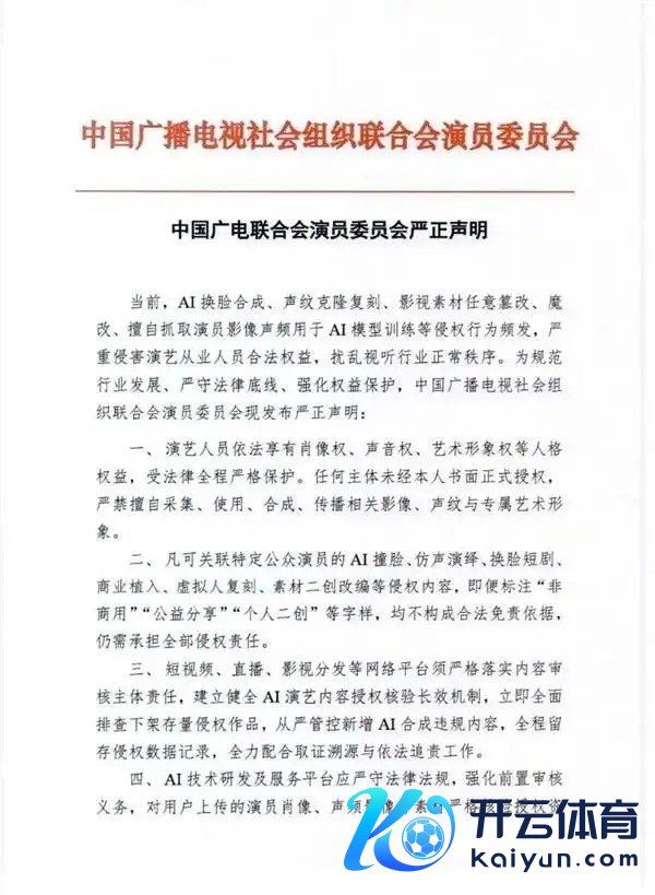 中国播送电视社会组织长入会演员委员会发布声明,明确阻难AI换脸和声纹克隆等侵权行径,并条件平台加强审核和核验机制,以保护演员的正当权力。